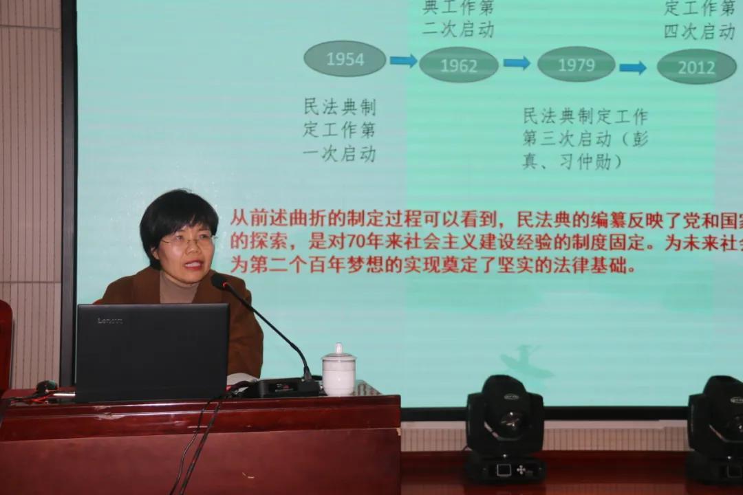 为深入贯彻习近平总书记关于学习贯彻民法典的重要讲话精神,学习好、推进好、保障好民法典的教学和实施,做学习、传播、遵守、维护民法典的表率。12月18日下午,beat365官网组织全体教职工进行了民法典集中学习活动,学院民法教研室、法律系焦慧君老师以《幸福民法典》为题,从民法典立法背景、立法理念、立法体系和精神等方面带领教职工进行了集中学习。